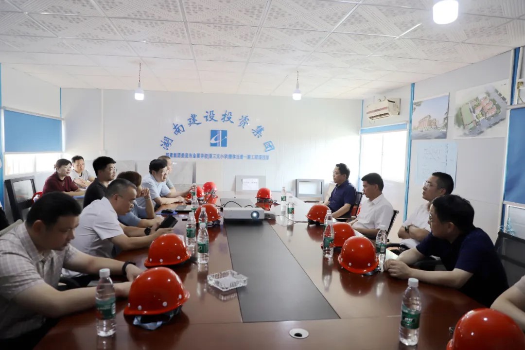 7月19日,副市長禹敏帶領市政府辦、市教育局、市城發(fā)控股集團及婁星區(qū)相關負責人,來金星學校就校園項目建設相關工作進行調研指導。萬寶投資集團黨委副書記、總經理徐業(yè)波陪同調研。